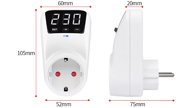 на 230В і LED-дисплеєм забезпечує надійний захист електроприладів від стрибків напруги. Вона оснащена регульованим порогом вимкнення в разі перевищення напруги, що запобігає пошкодженню техніки. Потужність до 16А дає змогу під’єднувати пристрої з високим енергоспоживанням, а функція автоматичного скидання забезпечує зручність використання – пристрій автоматично ввімкнеться після нормалізації напруги. Європейська вилка робить її сумісною з більшістю побутових розеток. Ідеальне рішення для захисту побутової електроніки та електроприладів.