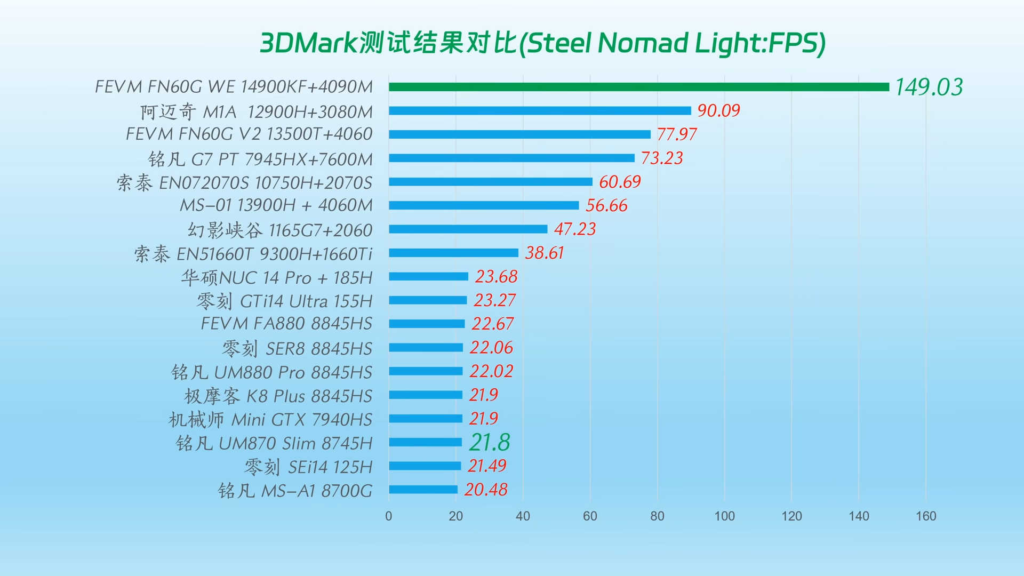 Температурні тести показали, що процесор під навантаженням нагрівається до 81°C, а відеокарта – до 77°C. Хоча потужність GPU обмежена на рівні 115 Вт, це не знижує високої продуктивності пристрою, особливо в графічному плані, де у FN60G поки немає суперників. В обчислювальних завданнях FEVM FN60G також демонструє видатні результати, поступаючись лише в рідкісних випадках моделі Minisforum AtomMan G7 Pt з Ryzen 9 7945HX.