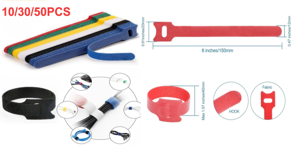 Набір із 10, 30 або 50 штук кабельних стяжок, що ідеально підходять для впорядкування дротів від миші, навушників та інших аксесуарів. Виготовлені з міцного нейлону з липким замком, що дає змогу багаторазово використовувати їх для фіксації кабелів. Зручні для зберігання і управління проводами, вони допомагають уникнути плутанини і захищають від пошкоджень, з можливістю повторного використання. Ідеальний вибір для дому, офісу та на ходу.