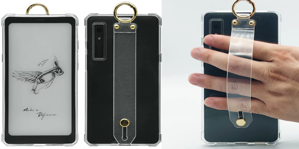 Універсальний захисний чохол для Onyx Boox Palma, Kant і Kant 2 з діагоналлю екрана 6.13 дюйма. Оснащений вбудованою підставкою для зручного читання і роботи з пристроєм. Має портативний карабін і ремінець для руки, забезпечуючи комфорт при перенесенні та використанні. Прозорий матеріал зберігає стильний зовнішній вигляд пристрою, одночасно захищаючи його від подряпин і пошкоджень. Відмінний вибір для тих, хто цінує функціональність і надійність.