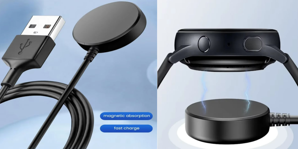 Компактна і портативна бездротова зарядка з магнітною фіксацією, сумісна з Samsung Galaxy Watch 8, 7, 6, 5 Pro, 5, 4, 3 і Active 2. Підключається через USB-кабель, забезпечуючи стабільне і швидке зарядне з’єднання. Ергономічний дизайн дає змогу використовувати пристрій вдома, в офісі або в поїздках. Надійне магнітне кріплення утримує годинник на місці під час заряджання. Практичний аксесуар для зручної зарядки смарт-годинника.