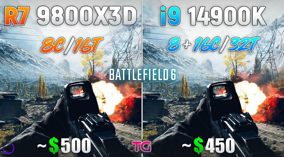 Ryzen 7 9800X3D впевнено випередив Core i9-14900K у Battlefield 6: до 30% приросту FPS та нижче енергоспоживання