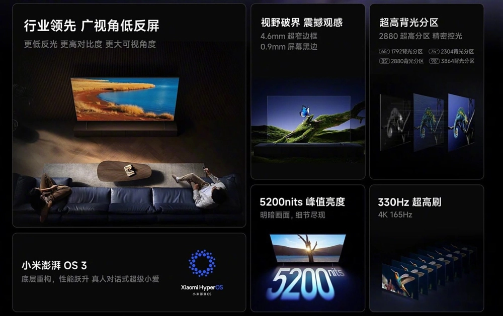 Працюють пристрої під керуванням HyperOS 3. За звук відповідає система потужністю 61 Вт з підтримкою Dolby Atmos. Також є технологія AMD FreeSync Premium Pro, що робить телевізори привабливими для геймерів.