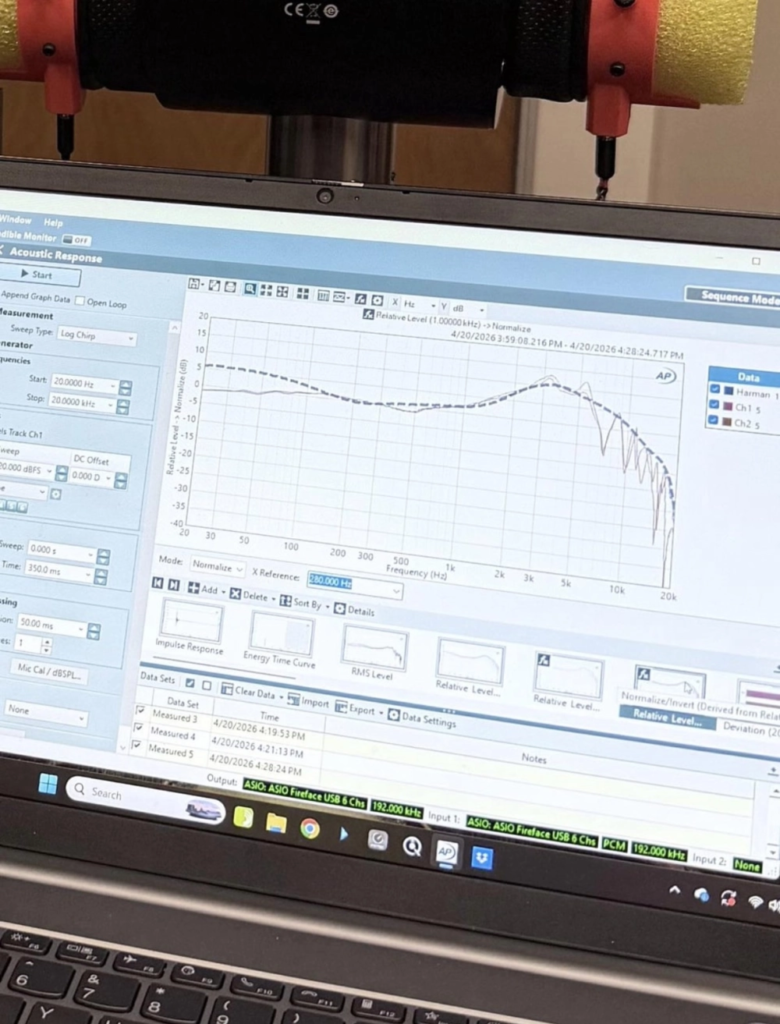 У конструкції використані 50-мм драйвери, які автор спеціально адаптував під м’який і пористий матеріал. За його словами, така комбінація дозволила досягти вражаючої акустики. На підтвердження він опублікував графік амплітудно-частотної характеристики та зазначив, що звук вийшов на рівні дорогих моделей на кшталт HiFiman HE1000, вартість яких починається приблизно від 2000 доларів.