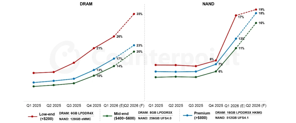 За оцінками аналітиків Counterpoint, собівартість флагманських пристроїв дорожче $800 може зрости на $100–$150. Значну частку витрат становить пам’ять: близько 23% припадає на оперативну і ще 18% — на накопичувач. У результаті навіть високі продажі не гарантують прибутку.
